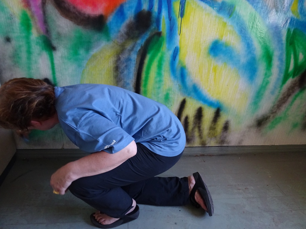 Osuuskunta Pöllökartano esittäytyi 17.1.2015 suurelle yleisölle, Väkeä ja asiasta kiinnostuneita oli salin täydeltä. Osuuskunta sai heti uusia jäseniä. Kuvassa Liebeskind-visio pöllökartanon tapaan: pesuhuoneen lattian alta kaivettuja tiiliskiviä.
