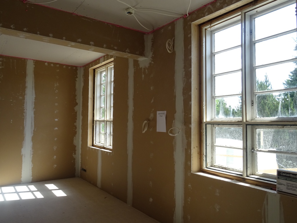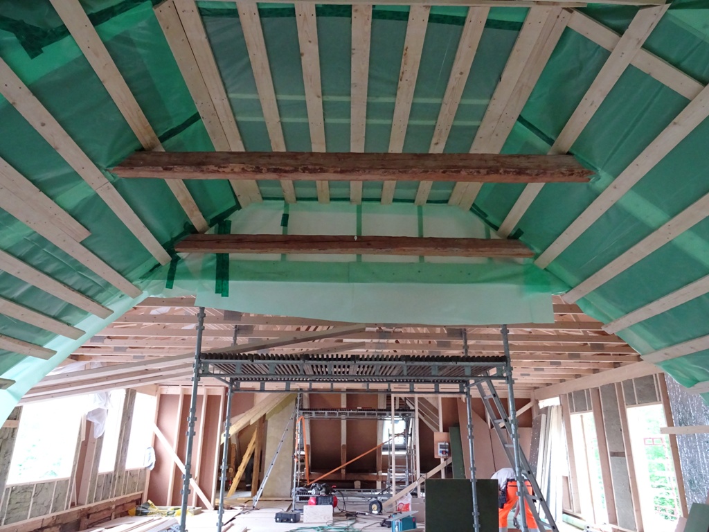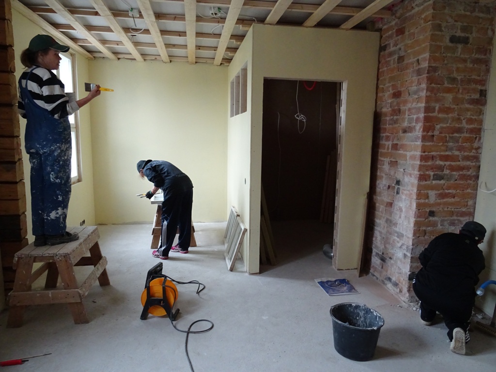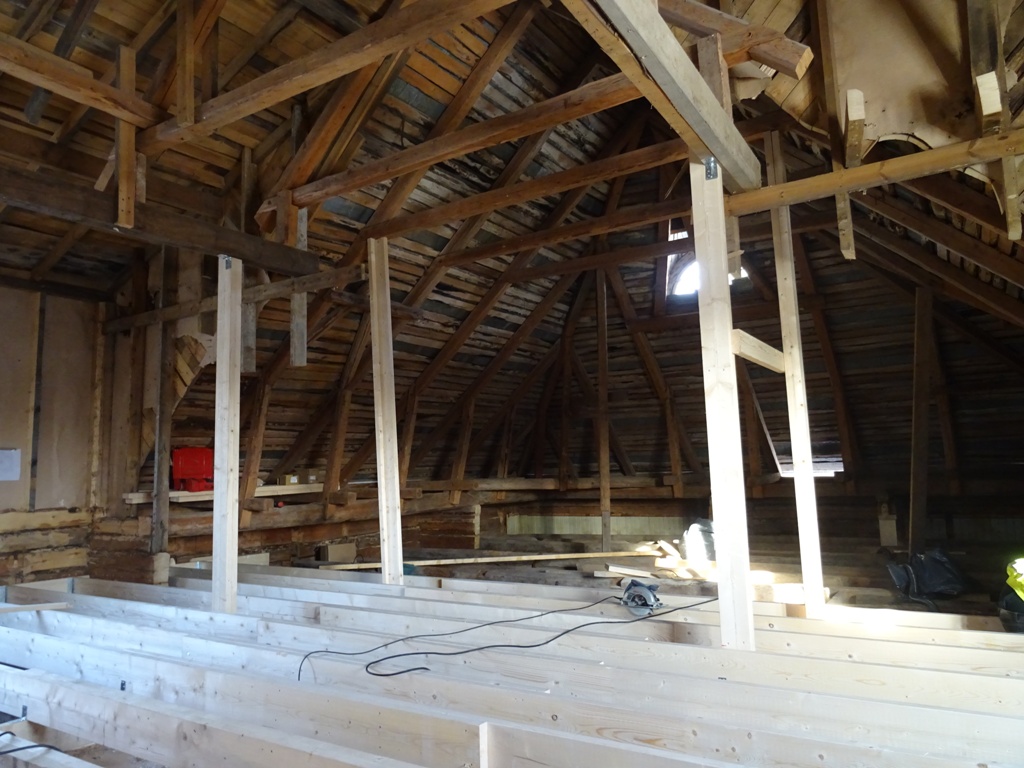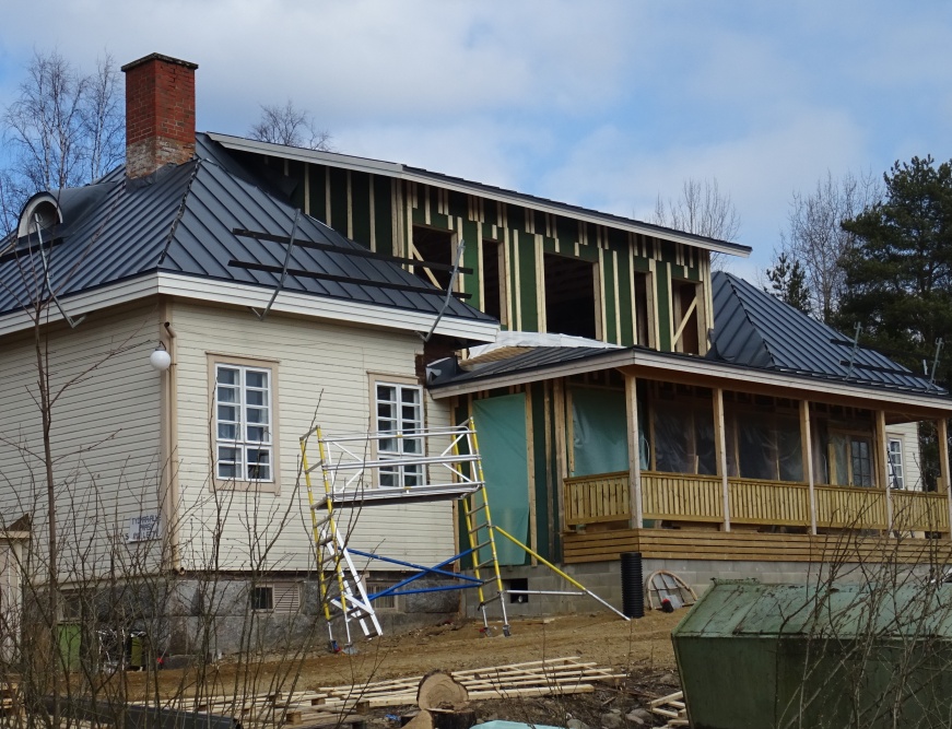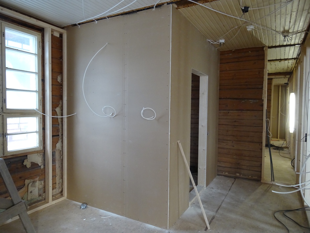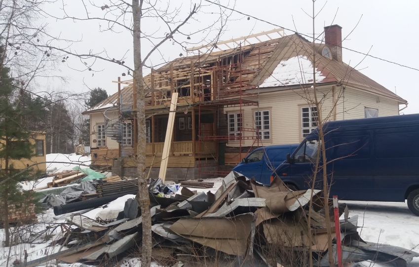 Yläkerran keskiosan vanhojen rakenteiden purku yläkerran keskiosan laajennuksen tieltä.
