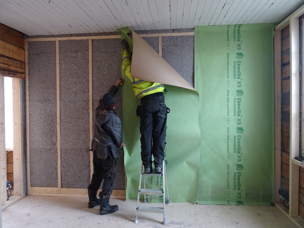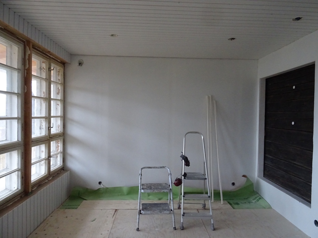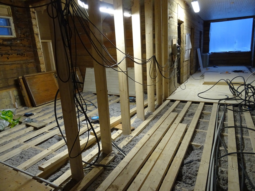 Yläkerran valmistelua puhallisvilloitusta varten.17.6.2017