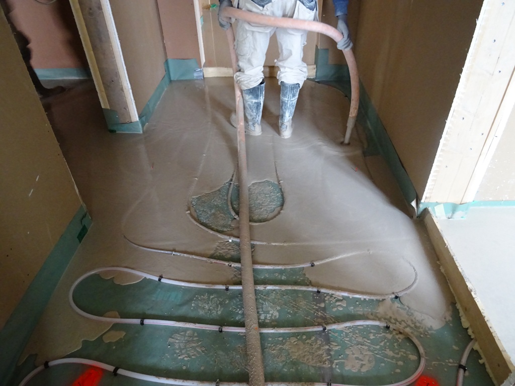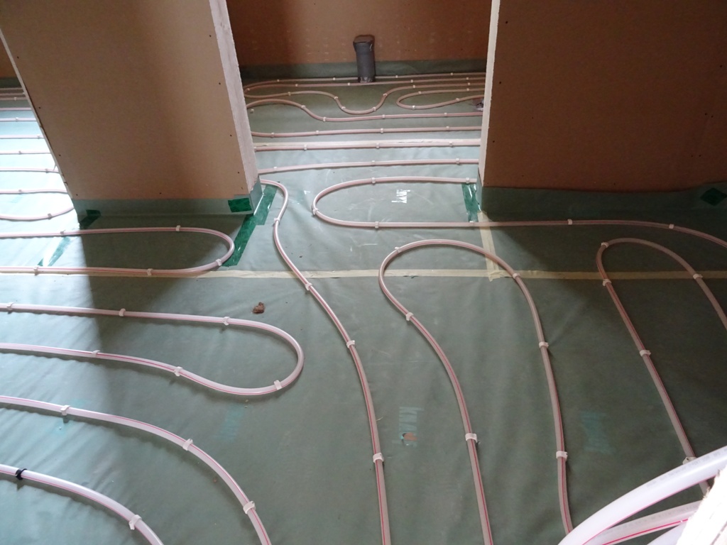 Alakerran lattialämmitysputkistoa alettiin asentaa.20.6.2017